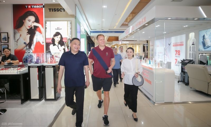 9月7日下午,爱沙尼亚图纳集团董事会主席克里斯蒂安·莱多一行莅临商业绿岛项目考察调研。市人民政府副市长江稳,东宝区委副书记、区长董勇,市供销社党委书记、主任傅强等陪同考察调研。东方百货党委书记、总经理金柱平全程陪同并负责项目讲解。