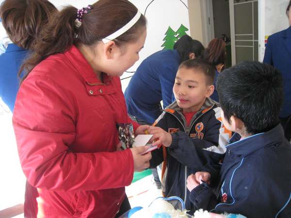 东方百货儿爱心大行动为孩子们带来衣服、鞋帽、围巾、手套和学习用品等