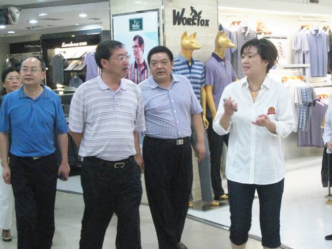 7月7日上午,云南省曲靖市供销社主任黄耀春(左二)一行到东方百货大厦、连锁超市、物流配送中心考察,市供销社副主任却运新(右二)等领导陪同。东方百货大厦总经理张兴平(左一),副总经理姜惠香(右一)向考察团介绍了相关情况,黄主任一行对东方百货的经营规模、购物环境给予了高度评价。