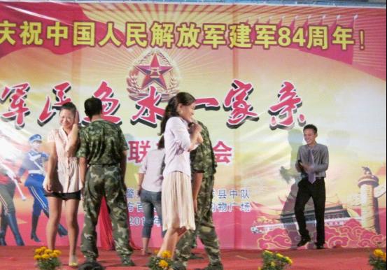 7月29日晚,在东方百货沙洋购物广场门前举行了一场庆祝中国人民解放军建军84周年的晚会。本次晚会由东方百货沙洋购物广场和武警荆门支队沙洋中队共同承办,为沙洋人民奉献了一场震撼的视听盛宴,整场晚会洋溢着“军民鱼水一家亲”的浓浓深情。
