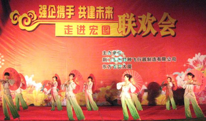 8月19日,东方百货走进荆门宏图特种飞行器制造有限公司,在宏图俱乐部露天电影场举行大型文艺联欢晚会。晚会上,东方百货与宏图公司职工精心编排的歌伴舞、相声、走秀等节目吸引了众多职工居民前来观看,整个广场挤满了兴致勃勃的观众,掌声不断,节目中间还穿插了互动以及有奖问答环节,大家兴致高涨,欢呼声一片。