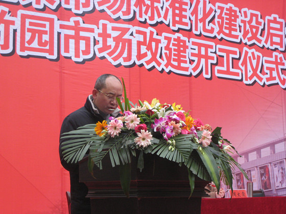 东方百货总经理张兴平在翠竹园市场改建开工仪式上讲话