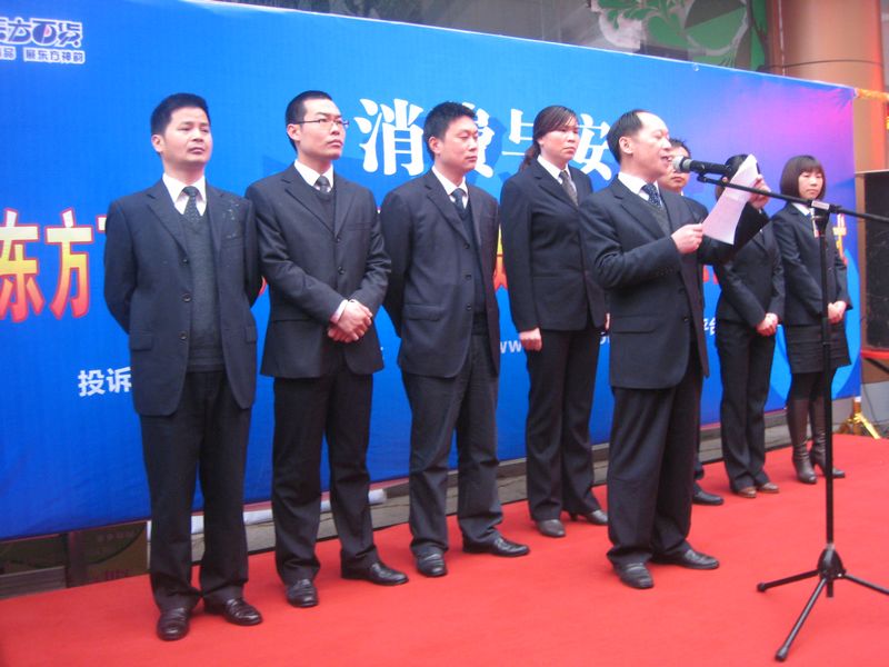 3月15日是消费者权益日,上午八点,东方百货全体干部职工在门前广场举行了价格、质量、服务优化监督平台的启动仪式。东方百货服装、家电、超市三大业态部门负责人及商场经理分别宣誓表决心,面对全市消费者做出服务承诺。同时,公司监察部门就价格、质量、服务等拿出具体措施,表示要严把商品质量关,狠抓食品卫生安全,强化优质服务细节,建立更为科学、完善的商品质量检验制度和商品价格监督管理机制,进一步强化售后服务流程,积极化解消费纠纷,成立专门的商品质量、价格、服务监督小组,进行严考核,重处罚,切实保证广大消费者购物无忧。
