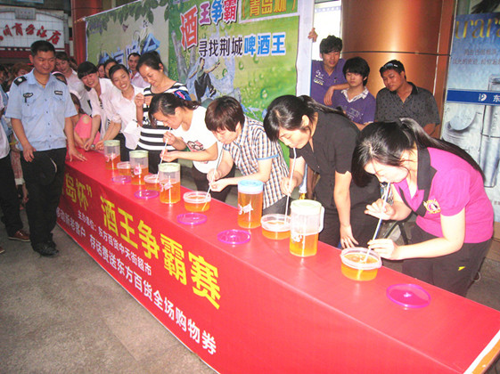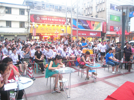晚会还没开始,中天街的老老少少们早早地吃过晚饭,然后就拖家带口地往晚会的举办地点跑,原来在这个炎热的夏天,东方百货每个星期五、星期六的晚上都会有一场热热闹闹的“纳凉晚会”,他们要赶去占据有利的位置。在整个6月里,东方百货大厦门口和东方家电门口从18点开始一直持续到21点多,轮流上演着不同的精彩内容,有东方百货组织、邀请全体市民共同参与的趣味性背夹球比赛、跳绳比赛、踢毽子比赛、吃西瓜比赛、喝啤酒比赛、K歌比赛和舞蹈比赛等等,大受市民欢迎,纷纷报名参与其中,鼓足干劲要大战一把,争夺晚会的终极大奖,真是好戏连台,台台都精彩。