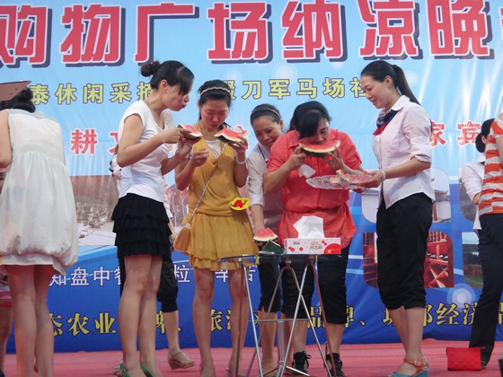 吃西瓜比赛中选手们相互之间激烈的竞争