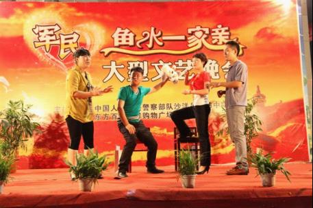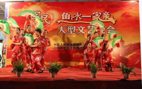 7月30日上午,女子腰鼓队成员一行参加了武警中队的慰问演出。晚上7:00,与消防中队一起组织了“军民鱼水一家亲”大型联欢晚会正式开始。消防官兵与沙洋东方百货的员工们一起表演了丰富精彩的节目。整场演出气氛热烈,舞蹈、独唱、小品、诗歌朗诵等形式多样的节目将晚会推向一个又一个高潮,特别是沙洋消防中队表演的京剧《大吊车真厉害》和小品《消防官兵显身手》,真实再现了消防中队的全体官兵以一腔真诚之血守卫平安沙洋的“新时代最可爱的人”的光辉形象。