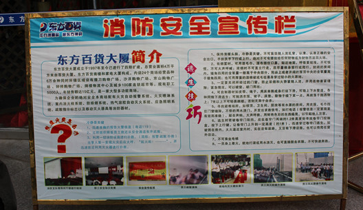 10月20日上午,公安部王处长到东方百货检查消防安全工作,东方百货副总经理金柱平等人陪同参观,东方百货安全督办罗科长向王处长详细介绍了东方百货安全消防设施情况。王处长对东方百货的安全消防建设给予了很高的评价,并强调做好当前的消防工作意义重大,要按照“大事不能出、力争小事也不能出”的要求,全力抓好各项消防安保措施的落实,坚决打赢消防安全保卫攻坚战。