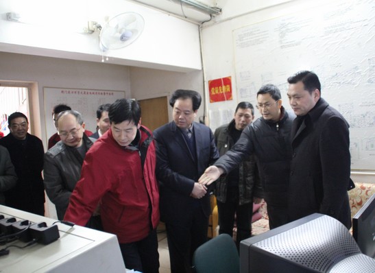 副市长郑中华(右四)到安全监控室现场了解了春节期间商场值班情况