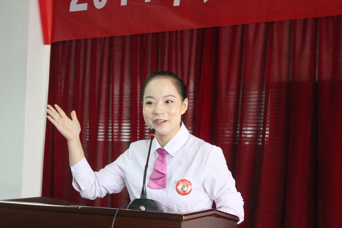 工会陈科长为获奖者颁发奖品