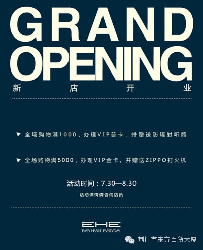开业期间,两件9折更有多重优惠好礼,EHE期待您的到来!