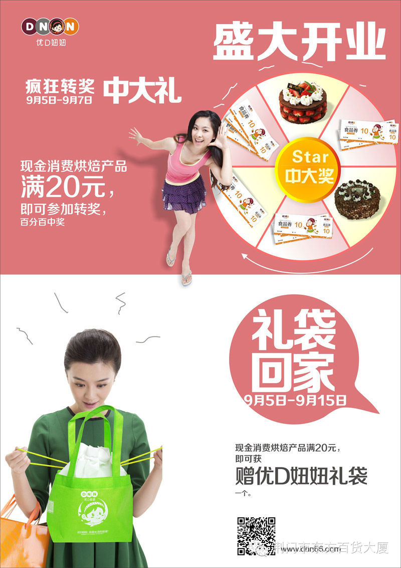 活动内容:凡购物满27元可免费获赠优D妞妞无纺布袋一个
