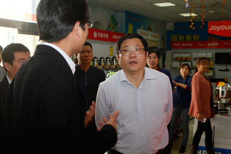 10月15日上午,省商务厅市场体系建设处蔡海泉处长一行,深入荆门东方百货调研电子商务进农村示范项目,听取相关负责人汇报,实地查看东方百货新农村电子商务服务站运行状况。