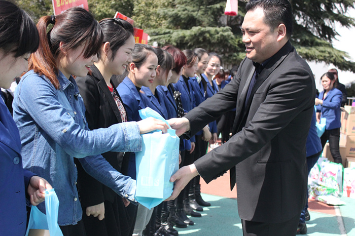 公司副总经理金柱平为每一位获奖员工颁发奖品
