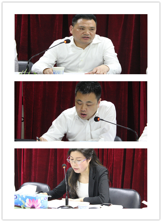 图为行政执总金柱平、业务执总田雄、总会计师曾凡梅分别做工作汇报