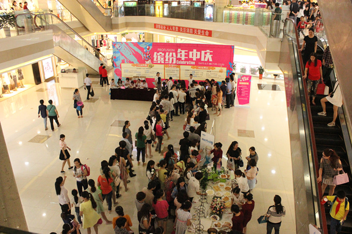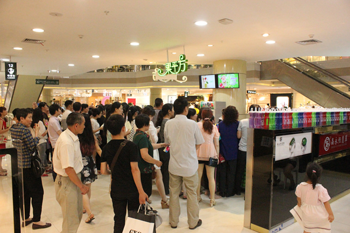 再看东方百货A座3楼果平方处,VIP们凭邀请函排队拿号,等待领取免费的鲜榨果汁,真是诱惑满满啊~既营养又美味的果汁,快到碗里来!