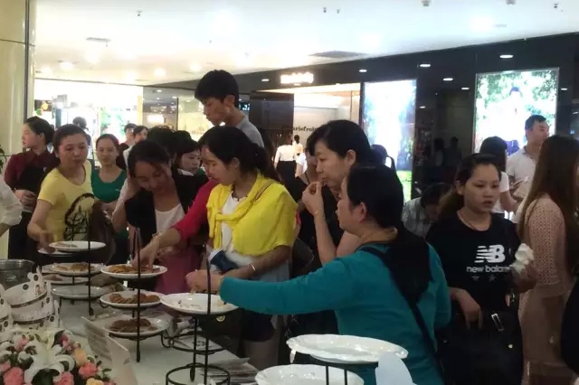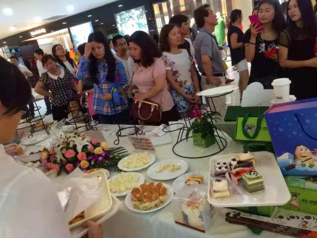 二楼中厅还布置了美味的茶点,整个店堂弥漫着浓浓的香气,让人垂涎欲滴~~顾客们纷纷前来品尝!