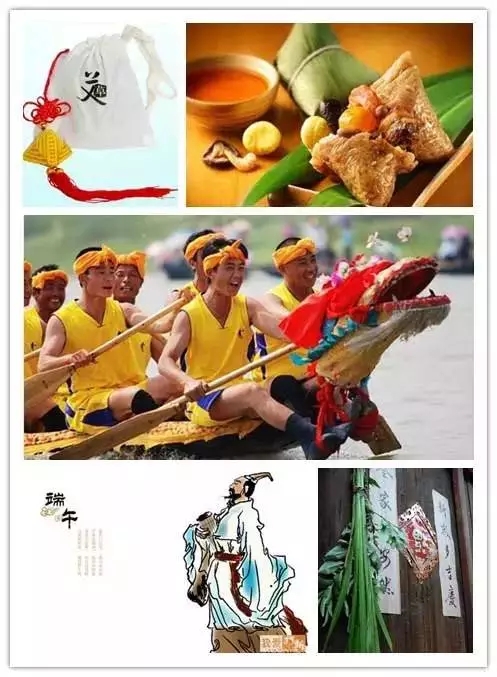 赛龙舟、吃粽子、佩香囊、悬艾叶、念屈原。