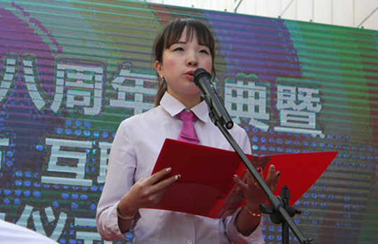 青年团员代表发倡议,倡导全体员工要以最积极昂扬、最奋发向上的精神状态,以最饱满的工作激情,以最旺盛的工作干劲,全身心地投入到18周年庆典的各项工作中去。