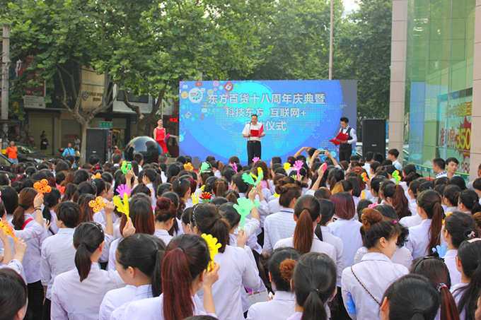 7月11日早上8点,一场声势浩大、全民共享的科技盛宴在东方百货大厦隆重举行。这里没有彩旗簇拥,却有现场无数朋友们的热情欢呼;这里没有鲜花环绕,却有千余商品任您疯狂秒杀,这里就是东方百货18周年庆典暨“科技东方 互联网+”启动仪式现场!