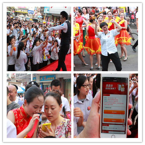 网络中心负责人郝飞现场介绍微信支付以及支付宝支付流程,台下数百员工以及周围蜂拥而至的市民全部拿起手机参与互动体验,微信祝福赢好礼,手机“摇”好运,更有0.99元起的疯狂秒杀将整个活动推向了高潮,100元一卡通、水芝澳防护套盒、价值数千元的周大福黄金吊坠、1.25P品牌空调……秒到统统带回家!现场近千部手机同时开启极速秒杀模式,拼手机、拼设备、拼RP,海量惊喜让在场所有员工以及消费者流连忘返,欣喜若狂!