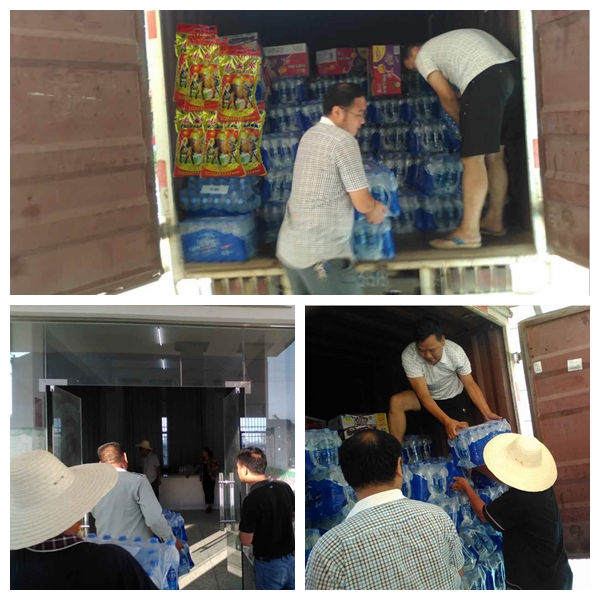 7月24日中午,东方百货京山购物广场总经理王正菊,带领公司员工搭乘一辆满载抗洪救灾物资的货车缓缓驶入永隆镇灾民安置点,慰问受灾群众,送去救灾物资。救灾物资包括饮用纯净水200件(5000瓶)、方便面50件(600桶)、大米1000斤等现在灾民最急需的生活物资。