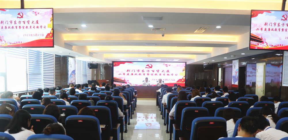 为进一步加强党风廉政建设,增强广大干部员工的廉洁从业意识,让廉洁奉公、反腐倡廉理念深入人心。5月27日,东方百货在来凤大厦组织召开二季度党风廉政建设大会暨第二十个党风廉政建设宣传教育月活动。大会由公司党委副书记、纪委书记金柱平同志主持,公司班子成员以及全体党员干部参加会议。