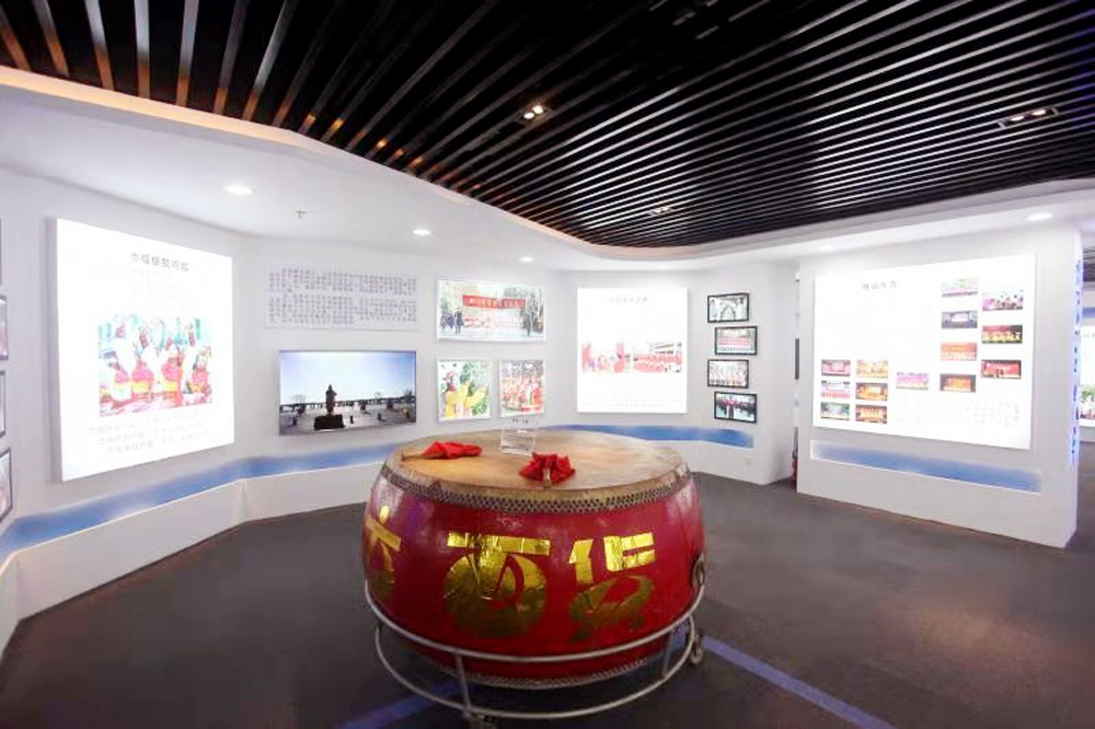 一面直径为1.8米的大鼓,安置在大厅中央。