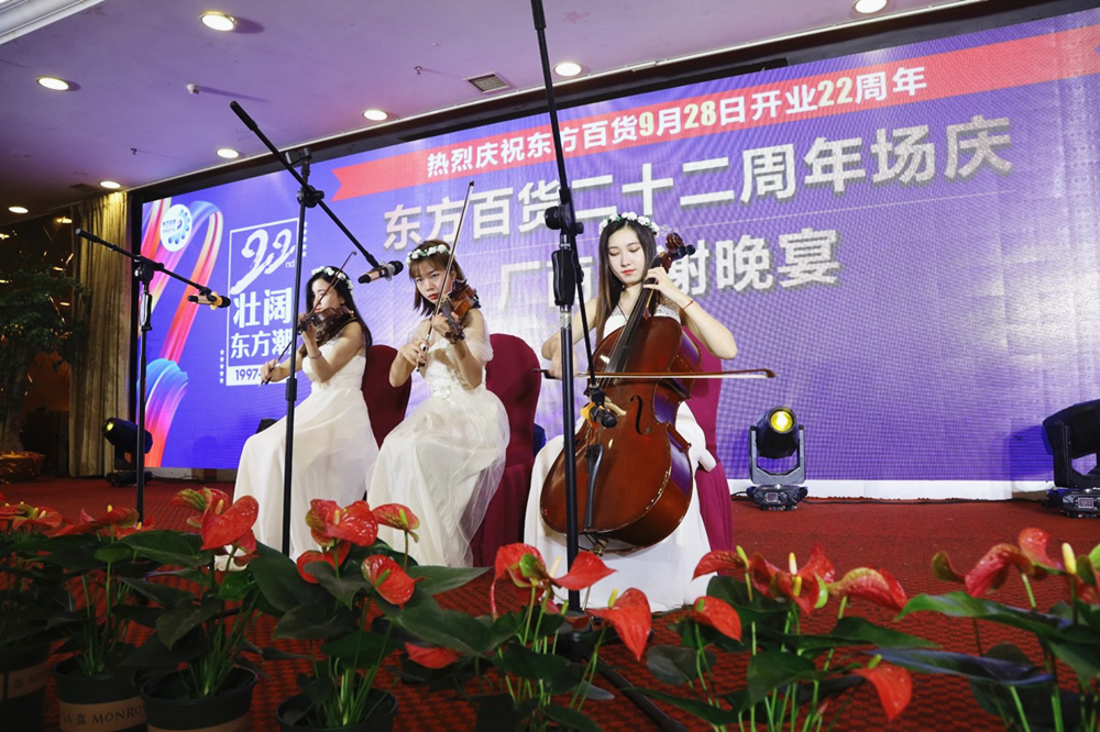 伴随着优美的提琴演奏和激动人心的互动抽奖环节,晚宴现场丝竹声声、觥筹交错,气氛热闹祥和、温馨美好、宾主尽欢,大家频频举杯为东方22岁生日庆祝,也展现了厂商与东方人精诚合作、共谋发展的情谊。