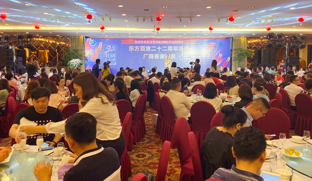 9月27日,东方百货22周年庆典晚宴在帝豪国际酒店隆重举行,各位厂商朋友和东方人齐聚一堂,共迎东方二十二周年华诞。