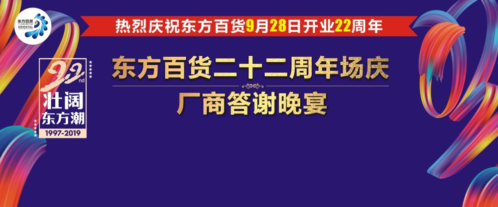 二十二年创新发展,东方百货多元业态,百花齐放香满园;二十二年科技创新,智慧新零售模式全面开启;二十二年感恩回馈,企业“回报社会,服务为民”的社会形象得到稳步提升;二十二年风雨同路,东方百货与各位合作伙伴共同书写出了浓墨重彩的华丽篇章。