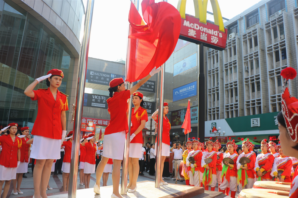 为热烈庆祝中华人民共和国成立70周年,10月1日早8时30分,东方百货党委书记、总经理张兴平带领班子成员、全体党员干部及部分优秀员工举行庄严的升旗仪式,以嘹亮的歌声抒发爱国情怀,表达对祖国母亲的美好祝福。