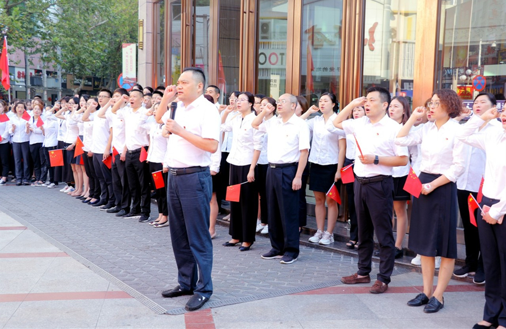 公司党委副书记、副总经理金柱平带领全体党员庄严宣誓,用铿锵誓言表达忠诚爱国心,用庄严的仪式感向新中国成立70周年献礼!