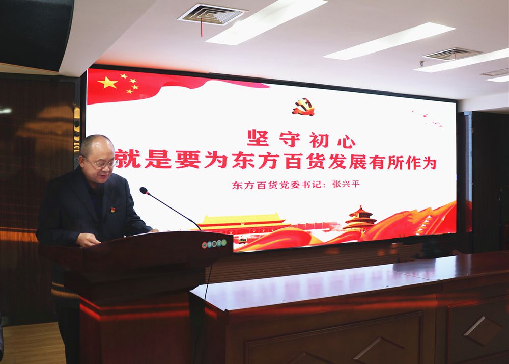 11月11日,以“11月党员主题活动日”为契机,东方百货深入推进主题教育活动,公司党委书记张兴平在会上讲党课,全体党员干部参会。
