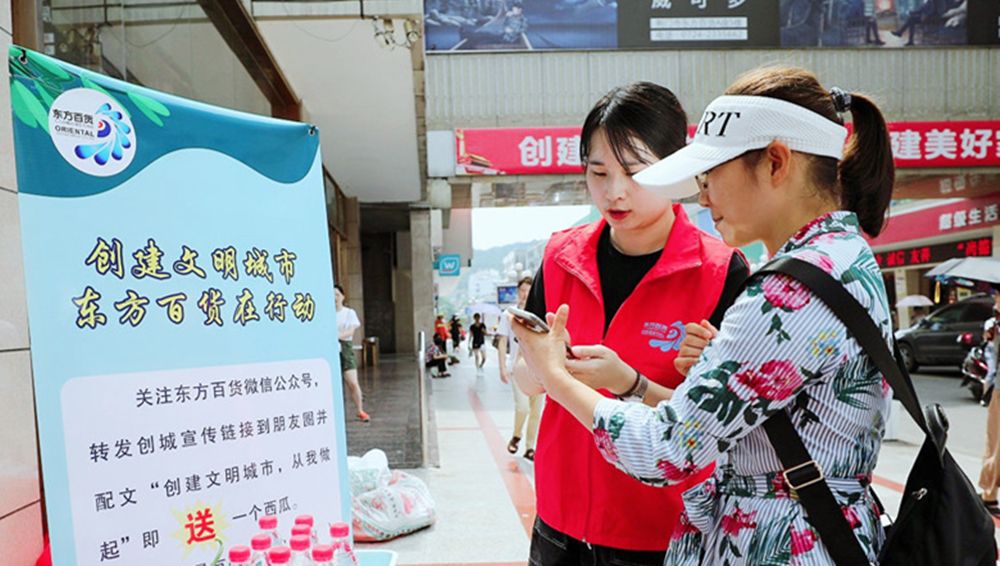 人民向往的美好生活,不仅是“仓廪实衣食足”的物质追求,还有“知礼节知荣辱”的社会风气。在全市深入推进全国文明城市创建中,东方百货全方位打造创城示范点,用良好的经营环境、优质的服务水平和舒适便捷的购物环境,让城市焕发出新活力,为创城增添新的果实,让市民享受到美好文明生活的多姿多彩。