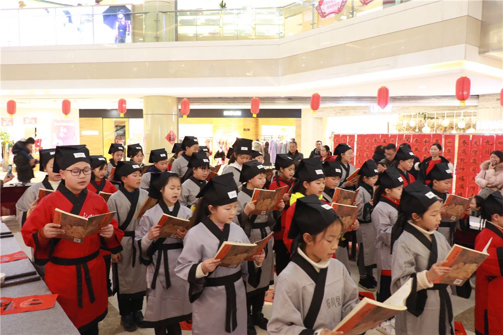 国学书童们齐声朗读国学名著《大学》,声音洪亮、感情饱满,让人不由自主的融入这浓浓的书香氛围中。他们还为大家献上了最真挚的新年祝福。