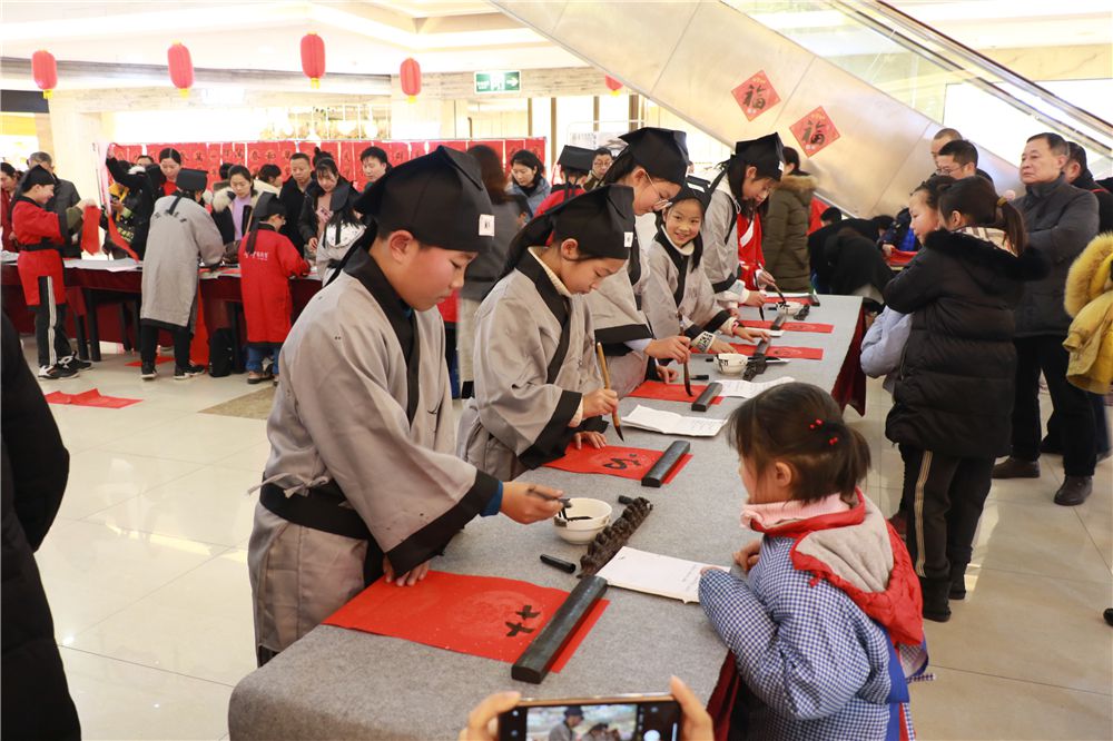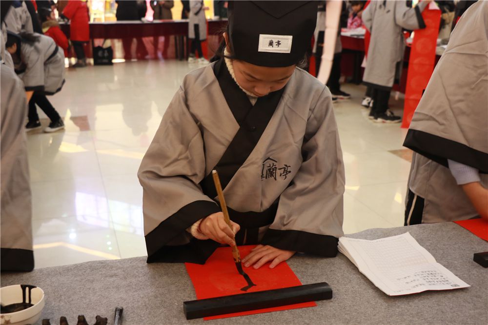 “过了腊八就是年”,春节即将来临,年味也是越来越浓。1月11日下午,兰亭书画教育的国学书童们齐聚东方百货2F中庭,他们脸庞稚嫩,却饱含书写热情,挥毫泼墨,为全市人民送上鼠年新春第一份最美好的祝福。