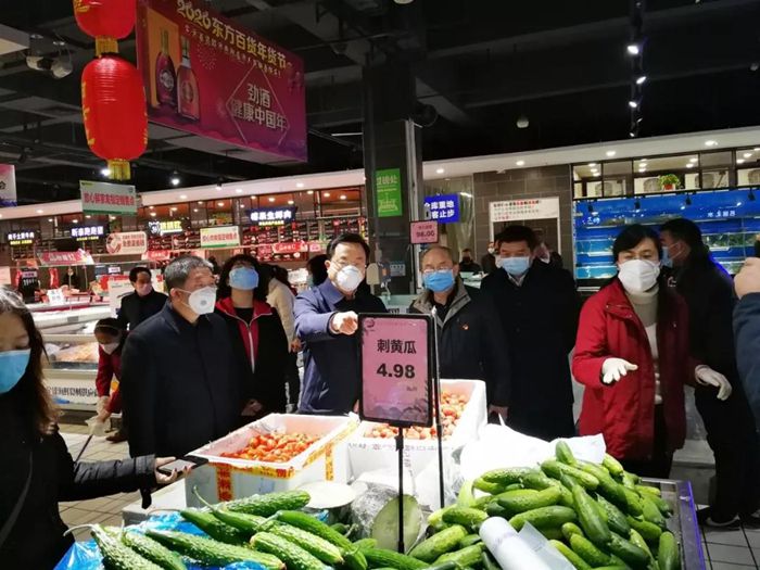 1月31日(正月初七)上午,市委副书记、市长孙兵到东方百货惠民农贸超市石化店、掇刀购物广场开展调研。掇刀区区长周俊杰、市商务局局长朱延琳参加调研,市供销社党委书记、主任王卫华、东方百货主要负责人陪同检查。