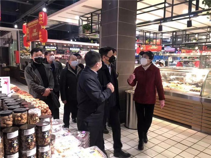 2月8日上午,副市长丁岱深入东方百货掇刀购物广场检查保供及疫情防控情况。市政府副秘书长王娈、市商务局、市市场监督管理局主要负责人,市供销社党委书记、主任王卫华陪同检查。