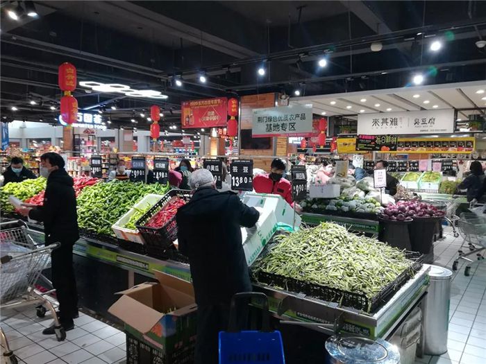 琳琅满目的生鲜、粮油、冷冻食品、日用品等生活必需品供应充足,价格实惠。为确保基本生活物资不断供、不脱销、不涨价,东方超市采购人员日夜兼程远赴山东寿光、荆州两湖以及本地各大基地现场查验货品质量,现场采摘,及时配送到店。