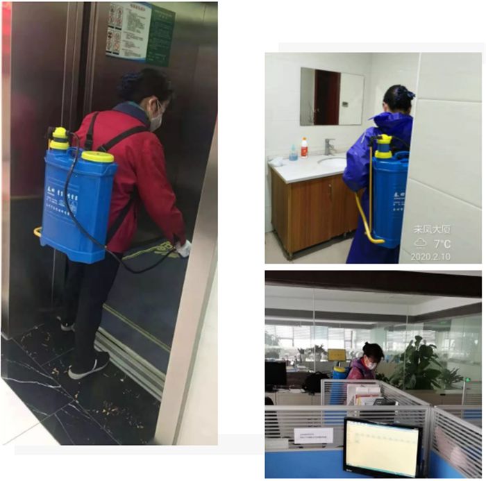 除了一线营业场所,总部办公大楼及家属区也是疫情防控的重点区域。公司成立专班小组每日对总部办公大楼、家属区进行严格管控,并严守三道关卡:出入人员体温检测、公共区域消毒杀菌、每日疫情摸底排查。