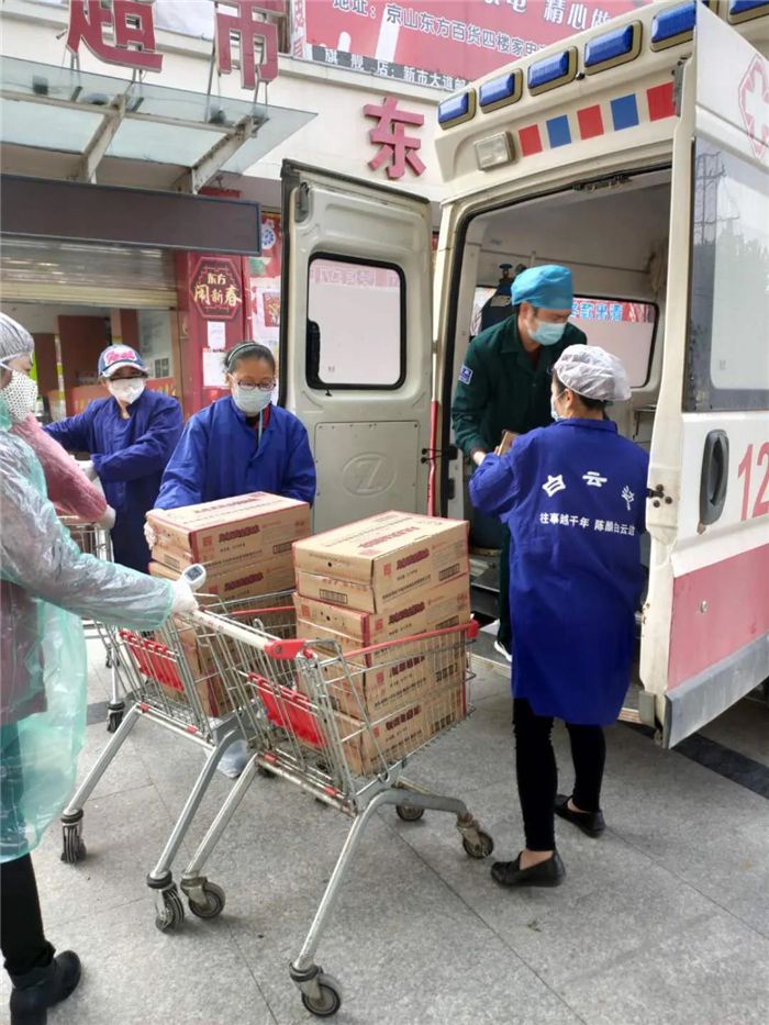 战疫期间医护人员为与时间赛跑救治病患,每天忙碌在病区和患者之间,每天就餐的时间无法保证,每餐的就餐质量无法保证,常常为了节省时间用方便面来解决一日三餐。医护工作者视病患为家人,我们视医护工作者为亲人,为了让他们能吃饭更香,让家乡的酱香佐菜为他们的餐桌添滋味。2月22日,东方百货京山购物广场负责人郭友文与超市众多优质厂家一一联系,紧急调集一批腌制酱菜物资,经过连续1个小时的点货装车,将103件价值近两万元的尝相思牛肉酱、富水白花菜、陶碧华老干妈等佐菜捐送于协和京山医院,以此表达企业对奋战在抗疫一线医护人员的敬意与支持。