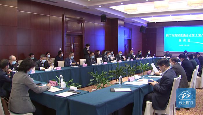 3月25日上午,荆门市召开商贸流通企业复工复产座谈会。