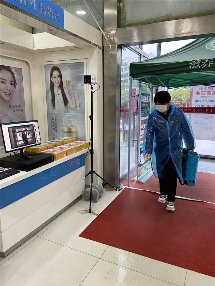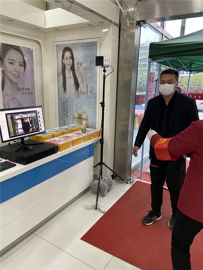 发热人员进入体温检测区,热成像自动测温仪发出预警