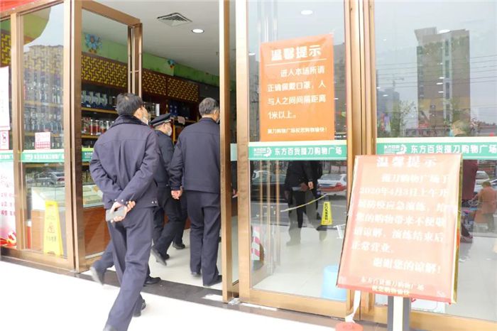 为积极做好新冠肺炎疫情防控工作,提高企业复工复产后疫情防控应急处置的能力,检验在突发事件时的现场配合和协调能力。4月3日上午,市商务局、市供销社在东方百货掇刀购物广场,联合举办中心城区大型商场疫情防控应急处置实战演练。市级层面重点场所疫情防控应急处置演练第四指导组、市商务局、市供销社、荆门高新区·掇刀区政府相关领导,东方百货、金城集团等中心城区大型商超负责人参加观摩。