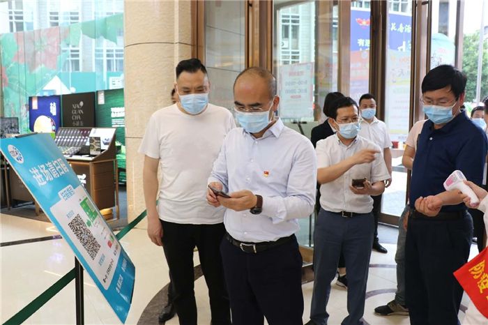 江区长一行依次扫健康码、测量体温后进入商场,到卖场、消防控制室等地,仔细检查了防火设施运行情况、防火人员持证上岗情况。他指出,购物场所是人员密集地,“五一”小长假期间促销活动更多、人员流量更大,做好安全生产和疫情防控工作的要求更高、任务更重。企业要高度重视安全管理工作,克服麻痹大意思想,落实好消杀、通风、戴口罩、扫码、测体温等各项防控措施,为企业复工复营提供更加坚实的安全基础。