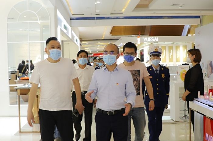 4月30日下午,东宝区委副书记、区长江稳一行深入东方百货检查五一节前安全生产及疫情防控工作,走访慰问一线员工并带头消费,副区长宋兴宇、区直相关部门负责人参加检查,东方百货党委副书记、纪委书记金柱平、副总经理徐伦武陪同检查。
