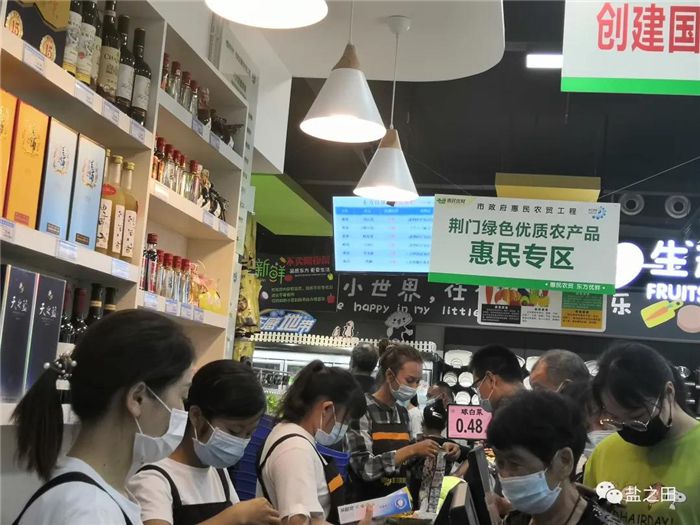 5月26日,惠民优鲜东方百货超市凯龙店正式开业,店内电子显示屏上滚动播放着生鲜产品的农残检测数据和产地、价格,市民们戴着口罩有序排队购买。这是自去年10月以来,荆门市市场监管局指导建成的第8家,也是本月建成开业的第2家惠民农贸超市。