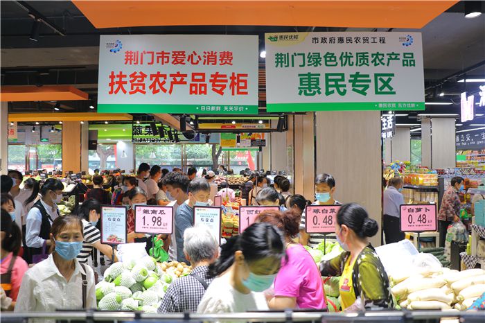 图二:市民们在扶贫农产品专柜、惠民专区采购蔬菜