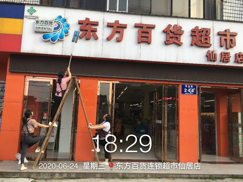 商场超市是人流密集场所,乱扔杂物、烟头,随地吐痰现象常有发生,为提升卖场形象,助力创城工作,东方百货连锁超市48家城乡门店每天都会对店内外环境进行全面的清洁工作,包括购物车、购物篮、商品货架进行清洗。所到之处,地面及周边环境整洁,卫生状况良好,管理规范有序,墙面玻璃无污秽,购物环境令人舒心。