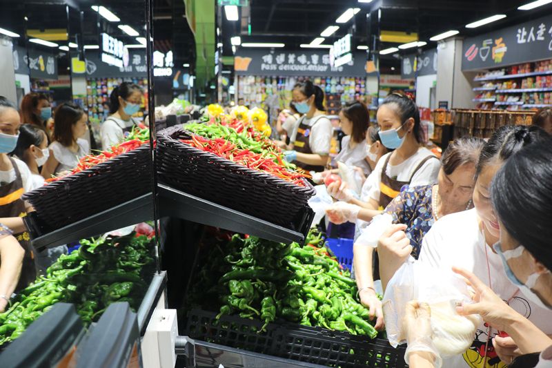 超市开业当天,数不胜数的货品与实惠的价格,吸引了许多周边的市民前来采购,现场人头攒动门庭若市。惠民超市以“保障生鲜份额、保障全品项、保障全天候、保障食品安全”四项原则满足民生需求。